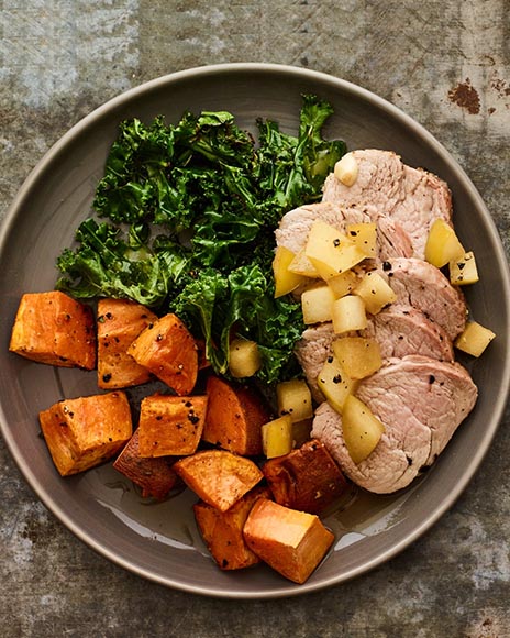 Make an easy salad with three of your 5-a-day. Halloumi with juicy pomegranate seeds and the crunch of pumpkin seeds is a moreish combination.